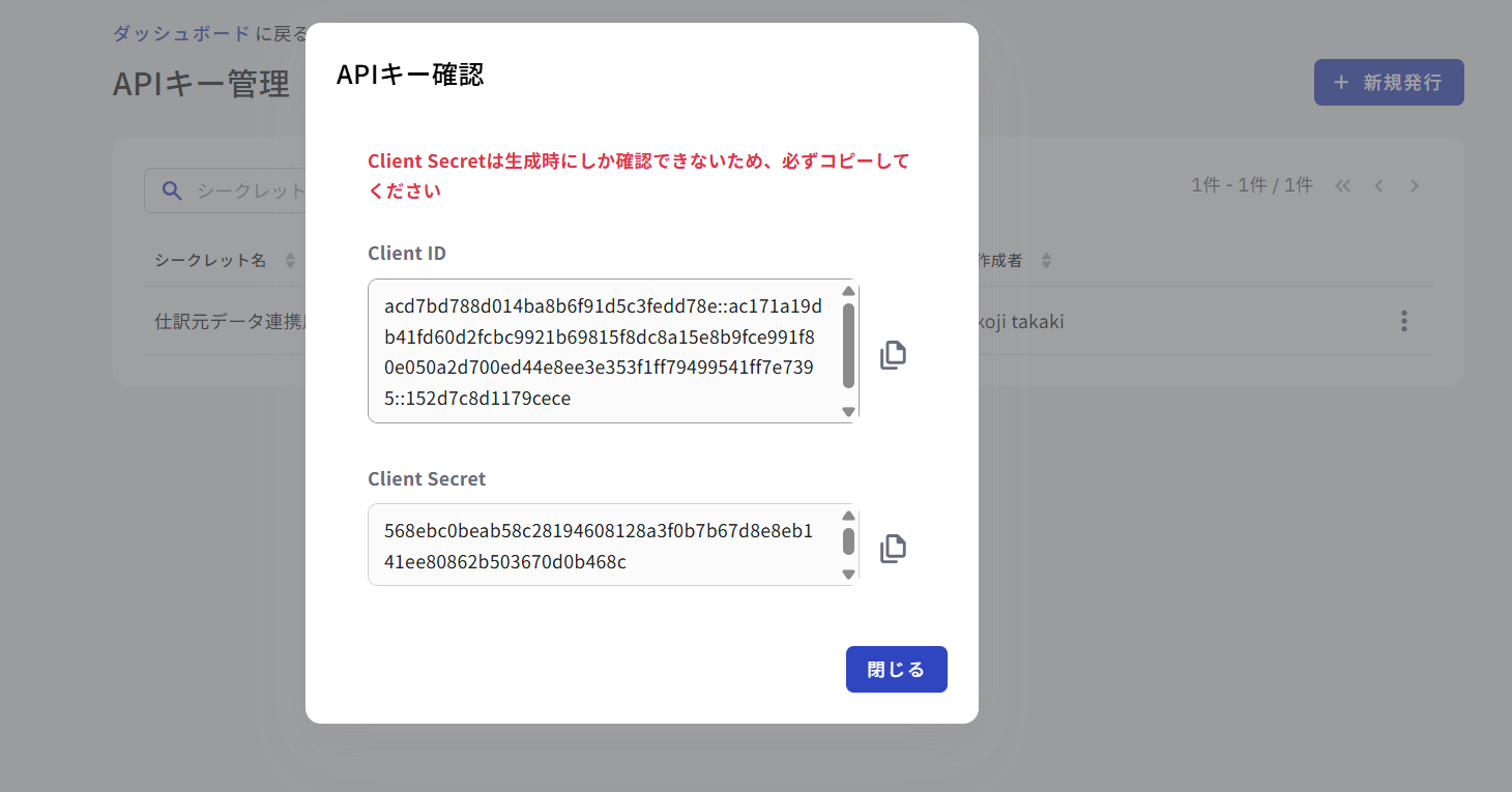 ファイルダウンロード API(外部システム利用)の実装に伴い、API キーを生成する画面が追加されました